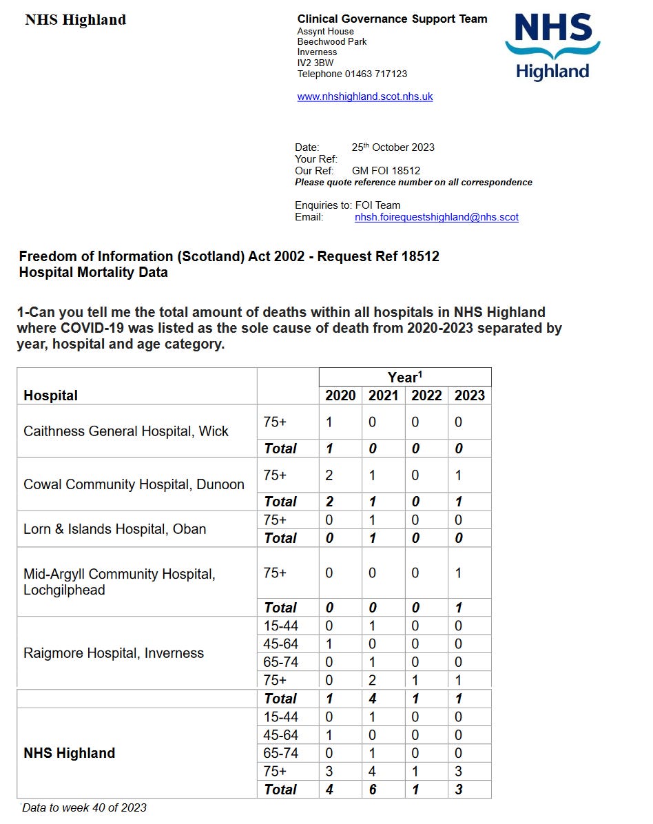 FoI: NHS Highland data-only FOUR 'COVID' deaths in 2020