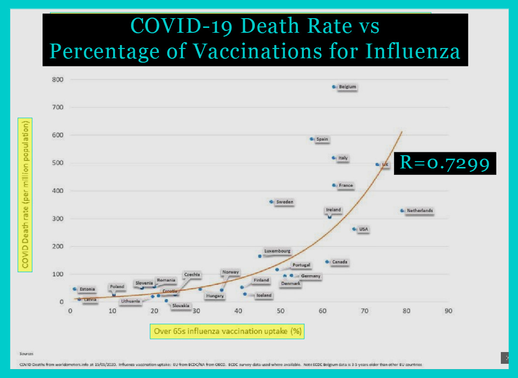 Whilst doing my (own!) research, I discovered this old piece I had shared on LinkedIn near the start of the declared COVID pandemic, showing a very strong correlation between flu vaccination uptake and COVID mortality:
